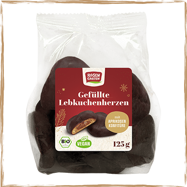 Marelična marmelada * (trsni sladkor * nerafiniran, marelična kaša *, želirno sredstvo: pektin, sredstvo za kislino: citronska kislina), temna čokolada * 30 % (kakova masa *, trsni sladkor * nerafiniran, kakavovo maslo *), PŠENIČNA MOKA *, trsni sladkor * nerafiniran, palmino olje*, amonijev hidrogenkarbonat in kalijev karbonat, karamelni sladkorni sirup*, sredstva za kislino: citronska kislina in vinska kislina, začimbe* (cimet*, janeževo seme, klinčki*, muškatni orešček*). * iz kontrolirane ekološke pridelave. Certifikat DE-OKO-003. Kmetijstvo EU, izven EU.