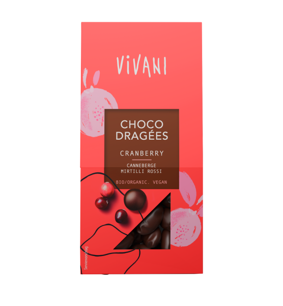 Za linijo VIVANI Choco Dragées se uporablja najfinejša ekološka temna čokolada s 53 % vsebnostjo kakava. Različica z brusnicami vsebuje sadne, sladkane brusnice. Vsebnost čokolade v drobnih kroglicah je 65 %.