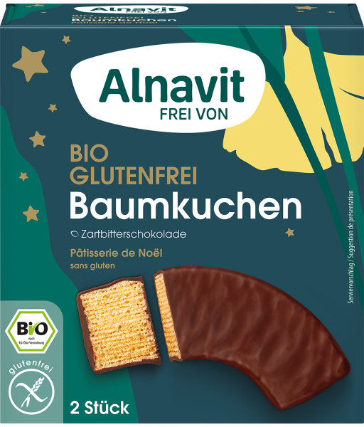 Alnavitovi brezglutenski praznični kolački so izdelani z ljubeznijo in pozornostjo do detajlov, vsaka plast testa je pečena posebej. Ko je kolaček prerezan, so obročki podobni enoletnim rastnim obročkom drevesa. Testo vsebuje visokokakovostne sestavine, kot sta maslo in jajca, in je zaokroženo z burbonsko vanilijo. Hrustljava prevleka iz temne čokolade daje kolačku piko na i.