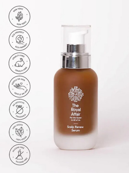 The Royal Affair obnovitveni serum za lasišče ne vsebuje trdnih delcev ampak z encimi temeljito očisti lasišče, ter se tako bori proti prhljaju, zmanjšuje mastenje in izpadanje las. Odstrani odmrle kožne celice in druge nečistoče, s čimer pusti lasne mešičke čiste. Kar preprečuje izpadanje las in pomaga, da lasje ostanejo dvignjeni pri koreninah, gladki in sijoči.