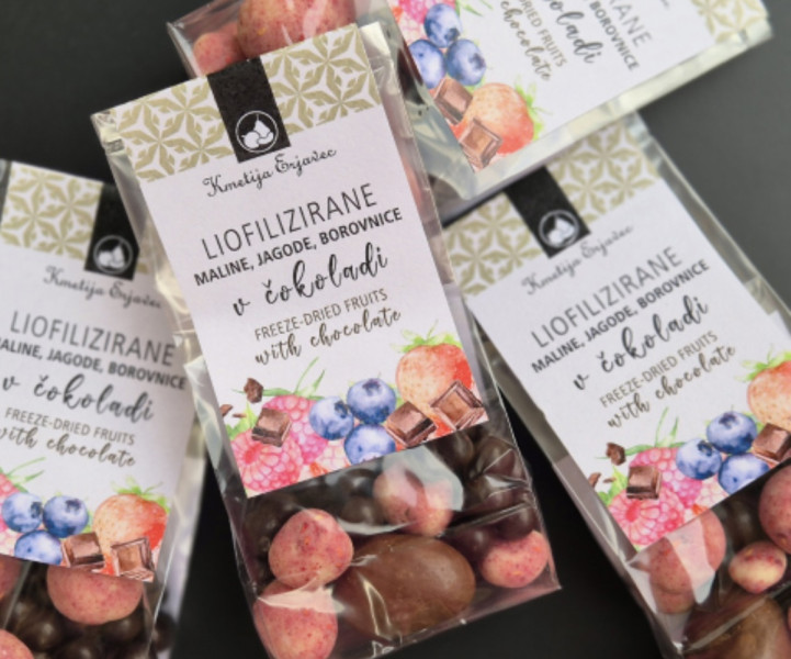 Liofilizirane borovnice v spremenljivem deležu 30 %.