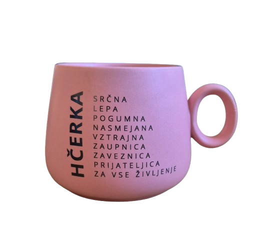 ZATE. HČERKA. Keramična skodelica v matirani barvi s potiskom, ki z najlepšim besedam opiše eno izmed najdražjih oseb.