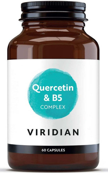 Kvercetin je bioflavonoid, ki se naravno pojavlja v številnih vrstah sadja in zelenjave. Viridianov kvercetin je pridobljen iz cvetov drevesa Sophora japonica, ki predstavlja naravni rastlinski vir te snovi. Vitamin B5 prispeva k normalni duševni zmogljivosti in k zmanjševanju utrujenosti in izčrpanosti. Prav tako vitamin B5 prispeva k normalni sintezi in presnovi steroidnih hormonov, vitamina D ter nekaterih nevrotransmiterjev.